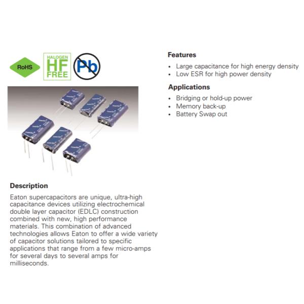 1.5 F to 5.0 F 5V Cylindrical Pack PHB Supercapacitor are unique, ultra-high capacitance devices utilizing electrochemical double layer capacitor (EDLC) construction combined with new, high performance materials, This combination of advanced technologies allows this brand to offer a wide variety of capacitor solutions tailored to specific applications that range from a few micro-amps for several days to several amps for milliseconds.